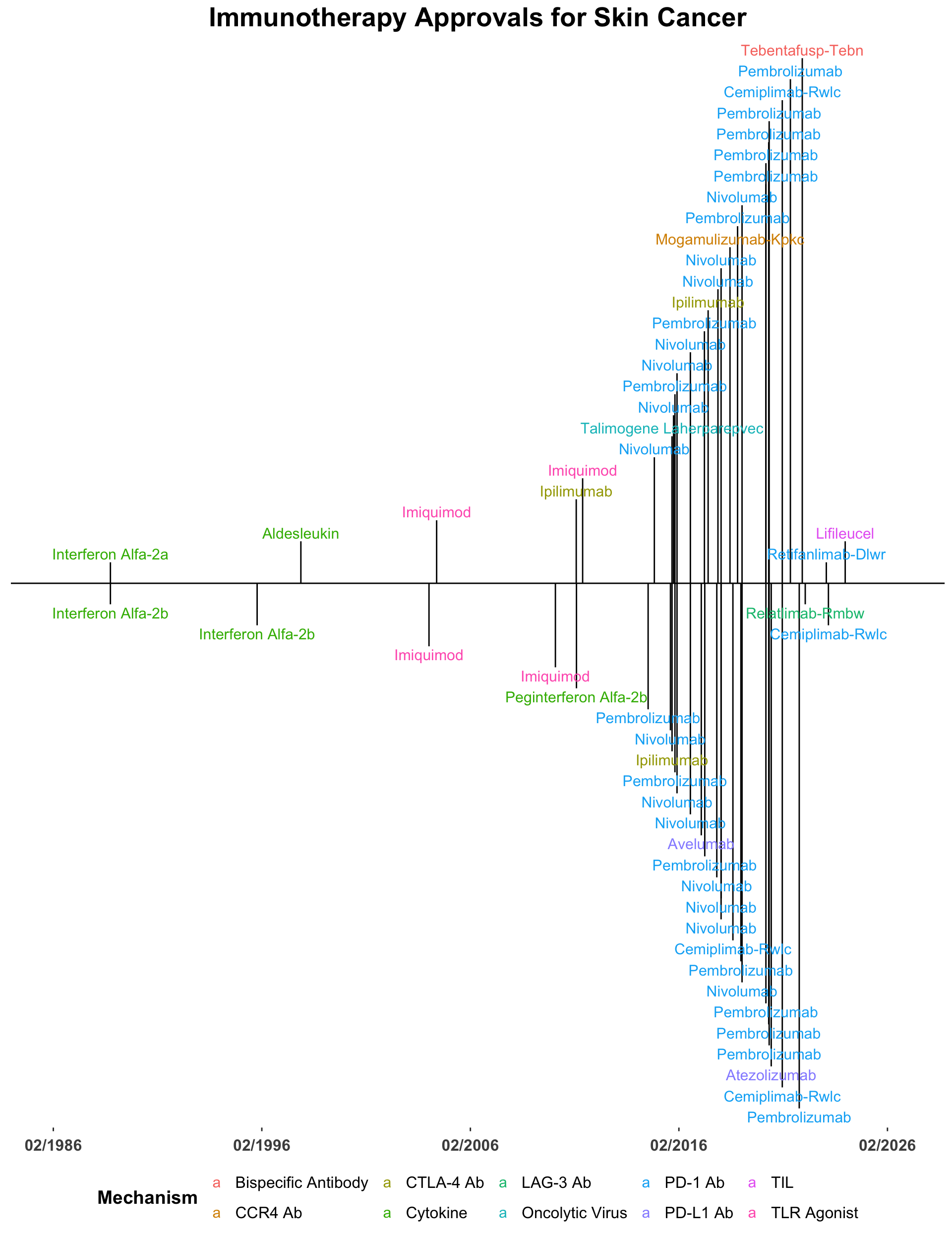 Immune checkpoint inhibitor therapy has revolutionized the management of skin cancer.2–4 With over 50 FDA approvals,5 immunotherapy has become the standard of care for the majority of advanced cutaneous neoplasms (Figure 1).6–8 Furthermore, recent trials have demonstrated the activity of immune checkpoint inhibitor (ICI) therapy in the peri-operative setting for high-risk resectable disease.9–16 Therefore, the cohort of skin cancer patients eligible for immunotherapy continues to expand.