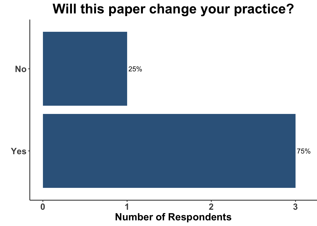 Furthermore, 75% of respondents reported that the study by Drobni et al. would change their practice (Figure 7), either by more specifically counseling patients on the potential association of immunotherapy and atherosclerosis, or by adjudicating the potential relatedness of ICI with cardiovascular events in clinical trials (Figure 8). This latter stands in contrast to the study by Gross et al.,13 in which both of the cases of fatal MI were deemed not related to ICI.