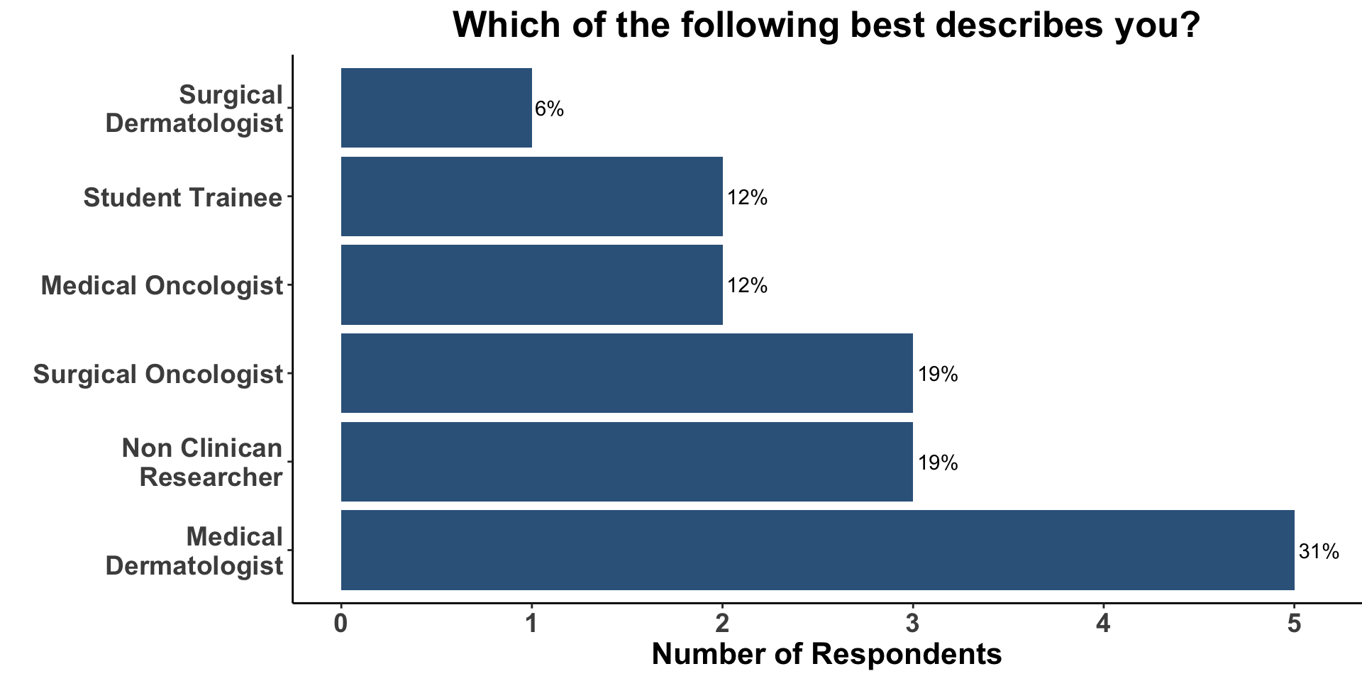 This Perspectives on the Science piece was published using Quarto®. The survey was conducted using REDCap® (Harris et al. 2009). The figures depicting the survey data were created using R (version 4.0.0) and the tidyverse suite of packages (Wickham et al. 2019), including ggplot2 (Wickham 2016). The figure depicting FDA approved therapies in melanoma was created using the skincancerRx package (Miller and Shalhout 2022).