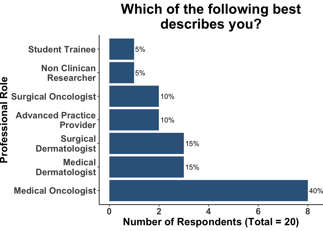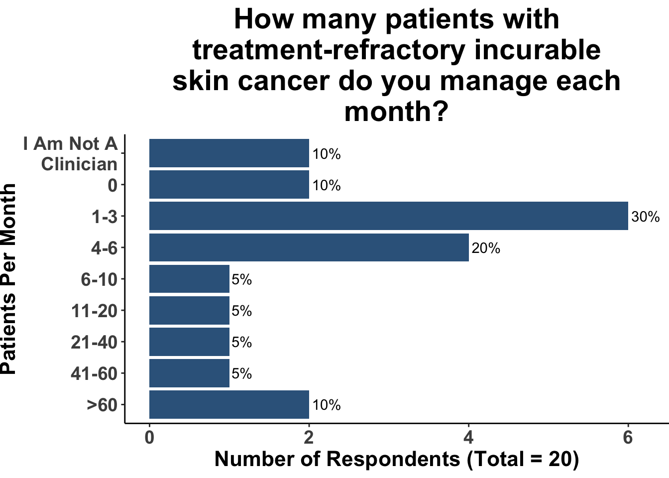 SoCO Journal Club participants including Medical Oncologists, Head and Neck Surgeons/Surgical Oncologists, Surgical Dermatologists, Medical Dermatologists, Advanced Practice Providers, and Student Trainees. This diversity reflects varying degrees of engagement with patients suffering from terminal cancers, as evidenced in Figures 2-3. However, given that MAiD is legally permitted in only a minority of U.S. states, only a select number of participants had personal experience with MAiD, as depicted in Figure 4.